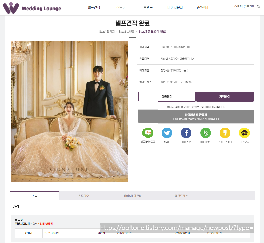 1) 셀프 견적이 가능한 플랫폼인 아이웨딩과 웨딩라운지를 통해 셀프 견적을 받아봅니다. 그럼 대략적으로 본인 견적에 대해 스드메 업체가 어느 정도 추려지고 업체의 퀄리티를 정할 수 있습니다.