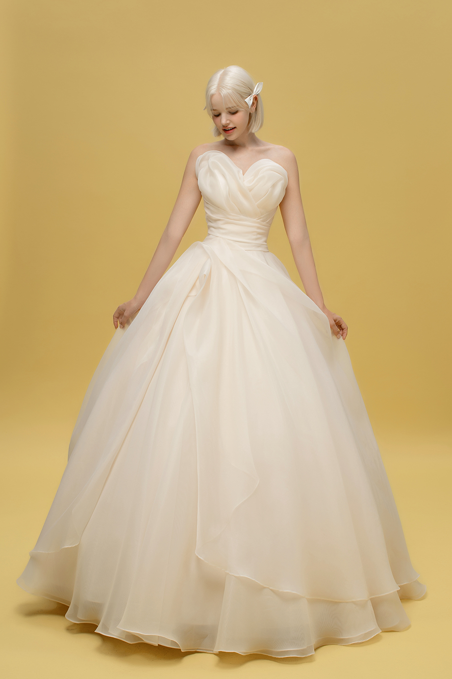- 가슴 부분 강조: 가슴 부분을 강조하여 신부의 여성미를 부각